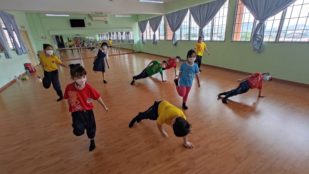 士毛月新村华小上课啦!好多学生都很爱跳舞哦!